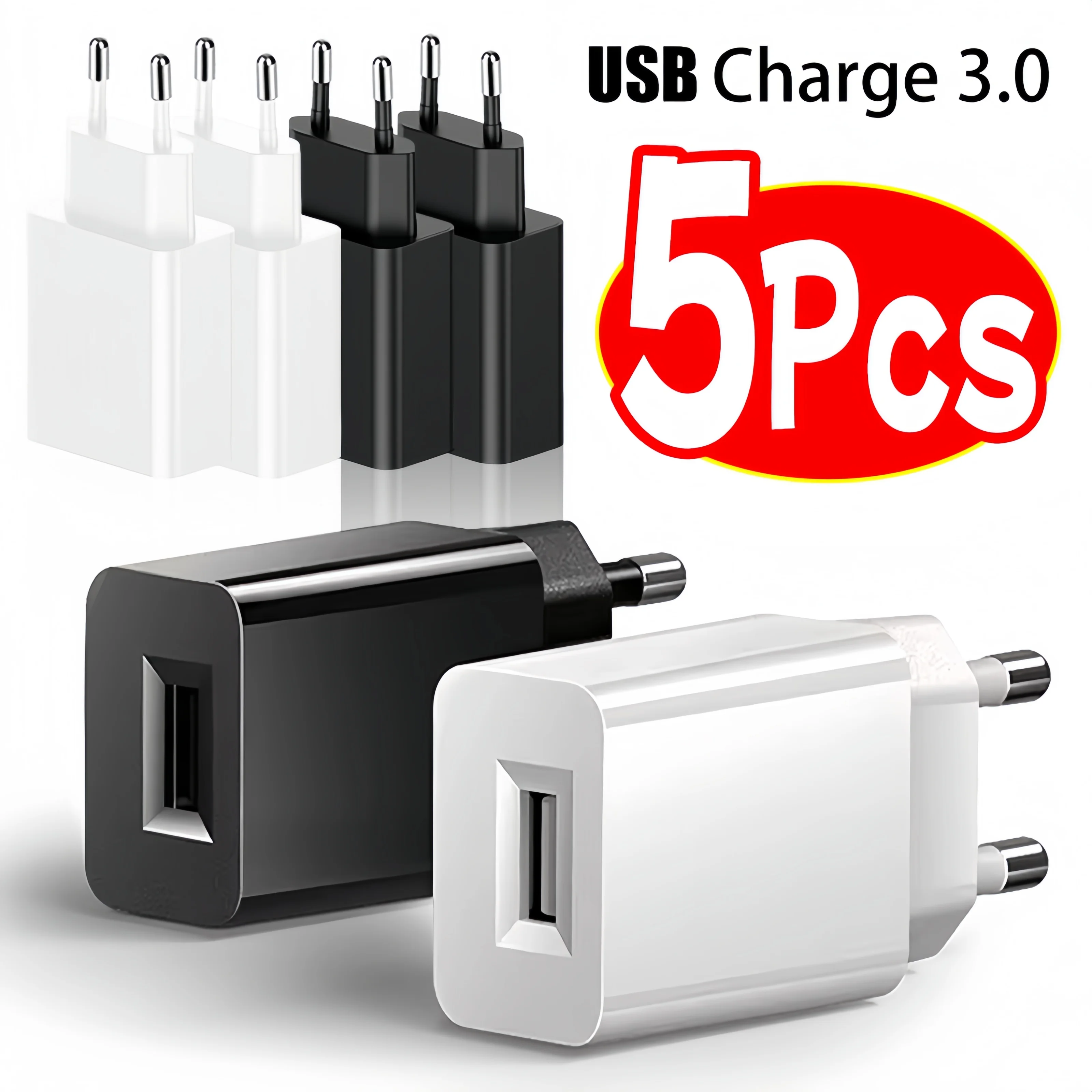 1-5Pcs EU Plug USB Charger Adapter Travel Wall Quick Charging 5V2A 1A Power USB-A Charger Adapter for Samsung IPhone IPad Xiaomi