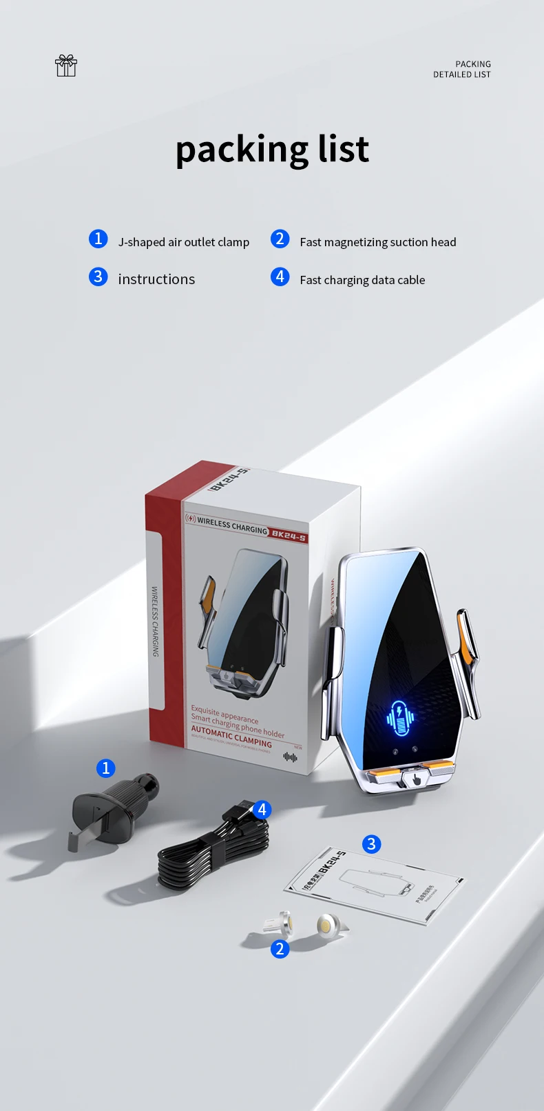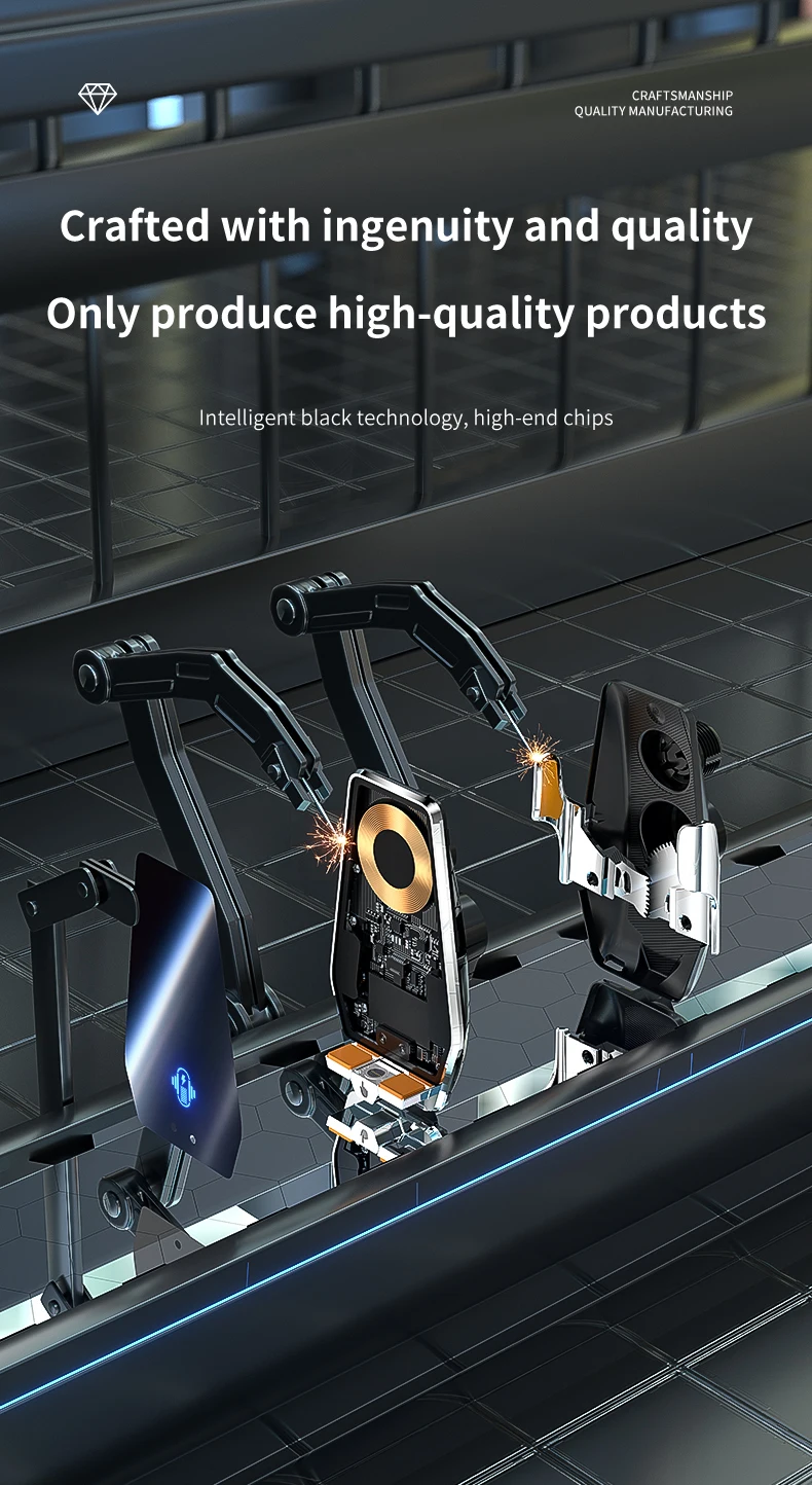 【 Upgraded Intelligent Auto-Clamping 】The wireless car charger's arms and foot will auto-opening after connecting to power, and will auto clamping firmly once place your phone in, don't need to manually adjust the foot to clamping the phone.