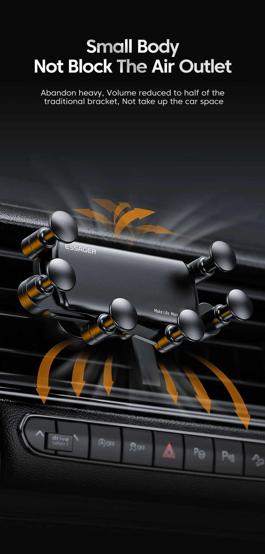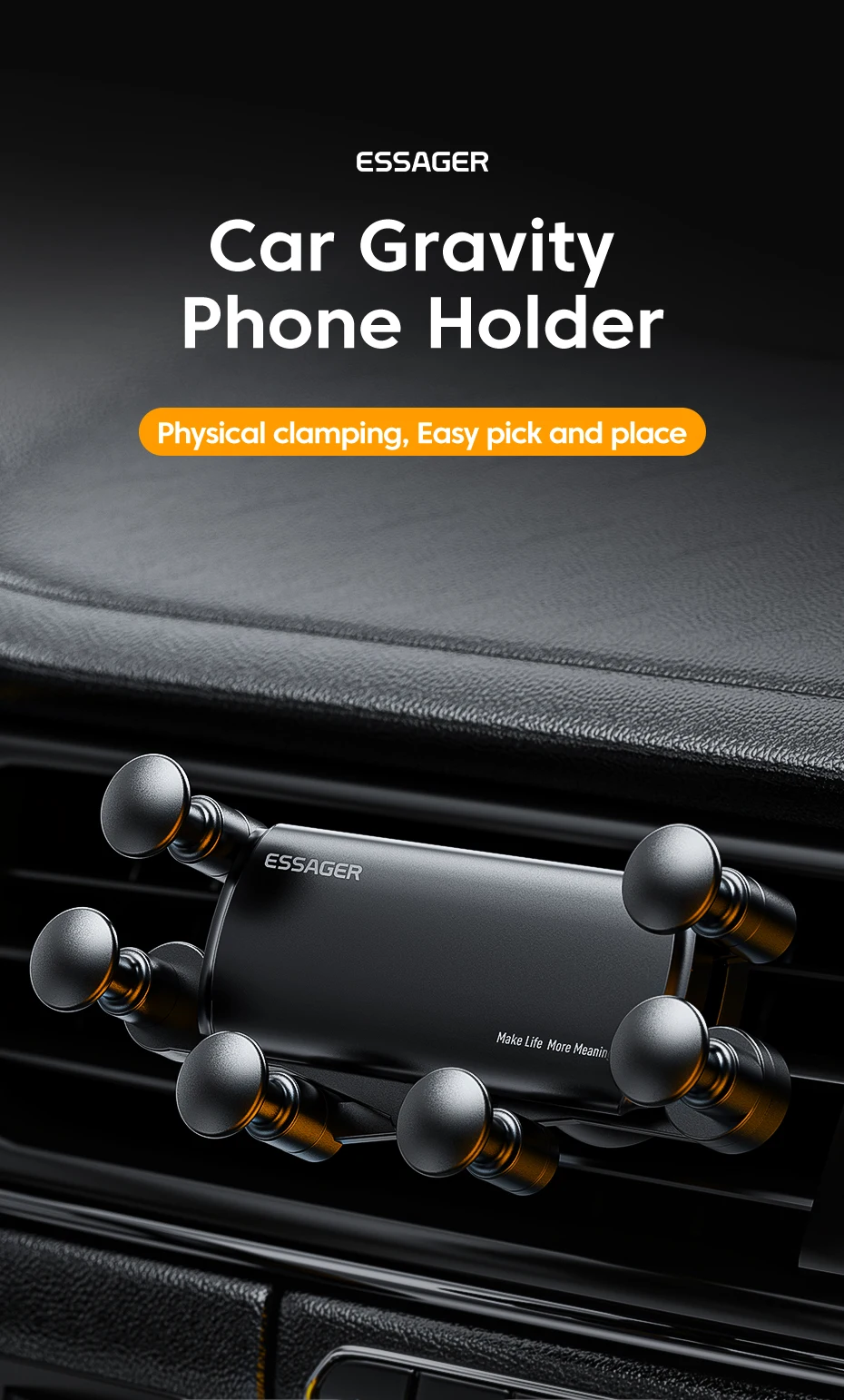 Shop NowEssagerUniversal 6 Points Solid Fold Car Phone Holder Gravity Car Holder For Phone In Car Air Vent Clip Mount Smartphone Holder