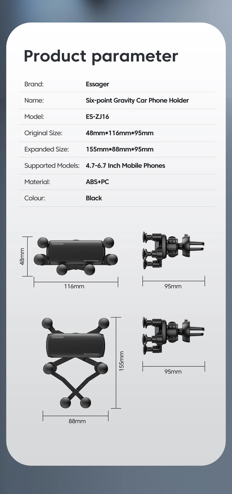 Model: Essager Gravity Car Phone Holder
