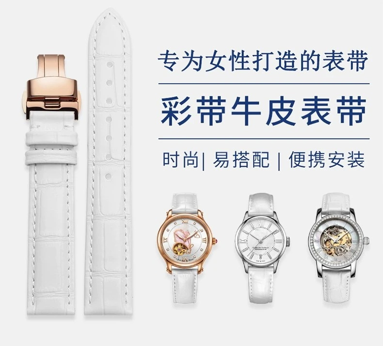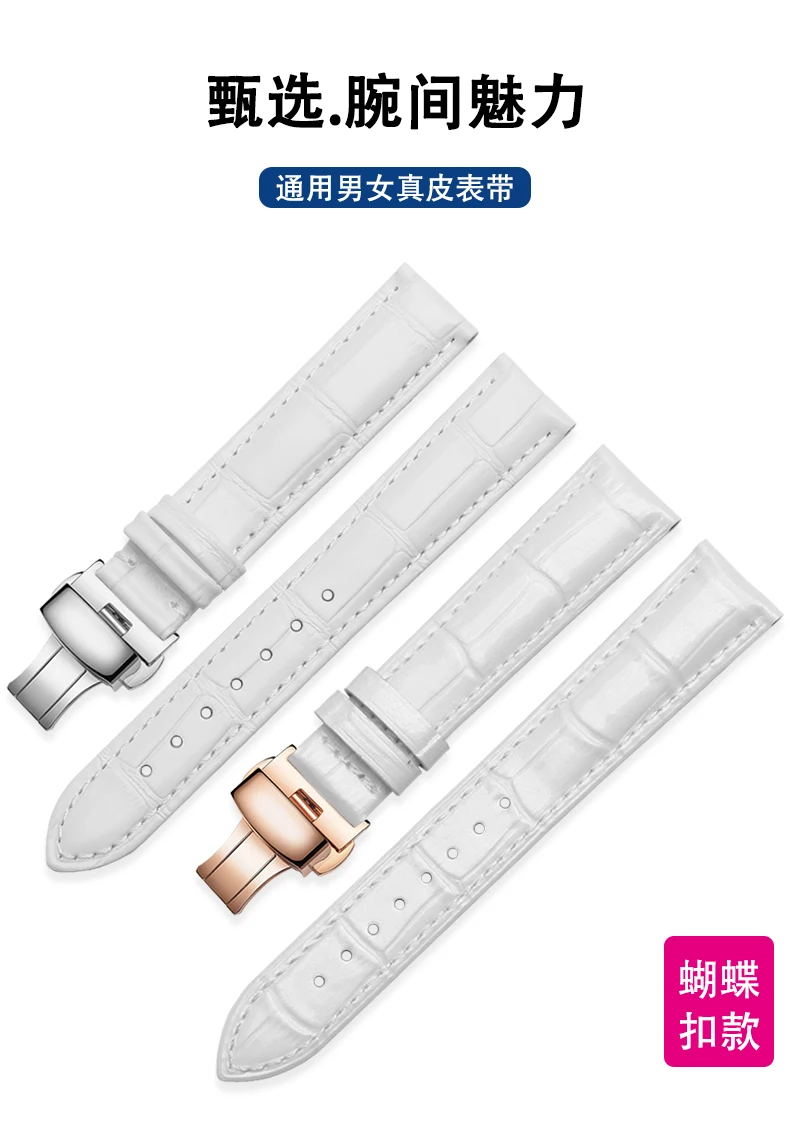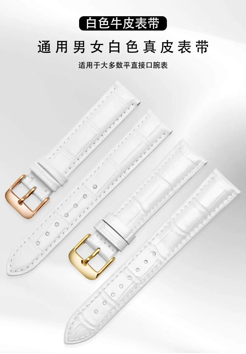 Shop NowFor Tissot Cartier DW White Strap 12m 14mm 15mm 16mm 17mm 18mm 20mm Rose Gold metal Watch buckle Genuine Leather Women Watchband