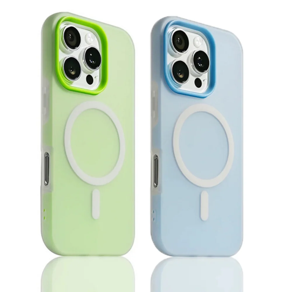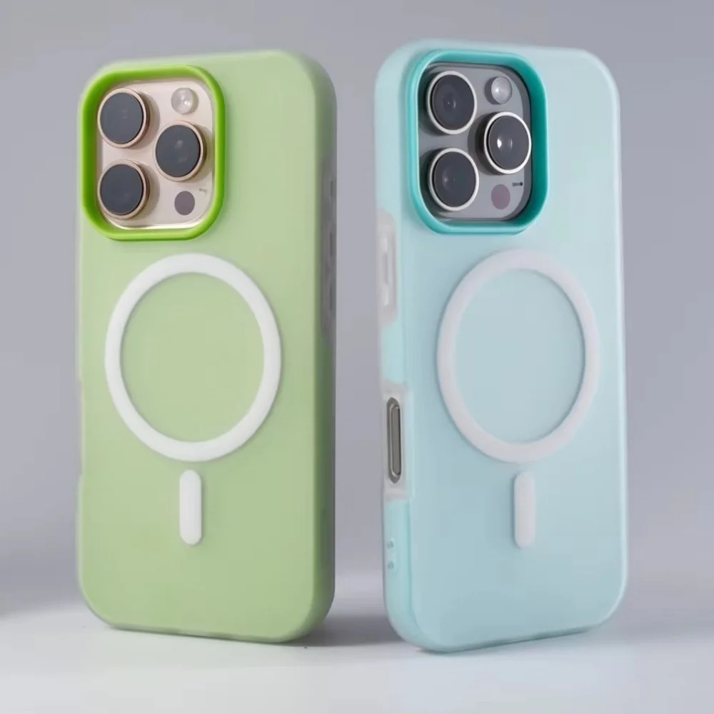 Luxury Candy Color 2 IN 1 for Magsafe Case for iPhone 16 15 14 13 12 Pro Max 11 16Plus 16E SE4 Magnetic Clear Matte Soft Cover