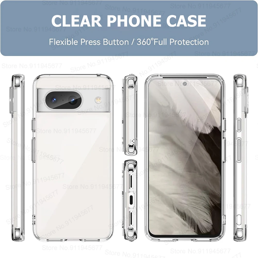 Shop NowLuxury Transparent Case For Google Pixel 9 8 7 6 Pro XL Shockproof Cover Clear 8A 7A 6A Bumper Soft Back Cover Phone Accessories